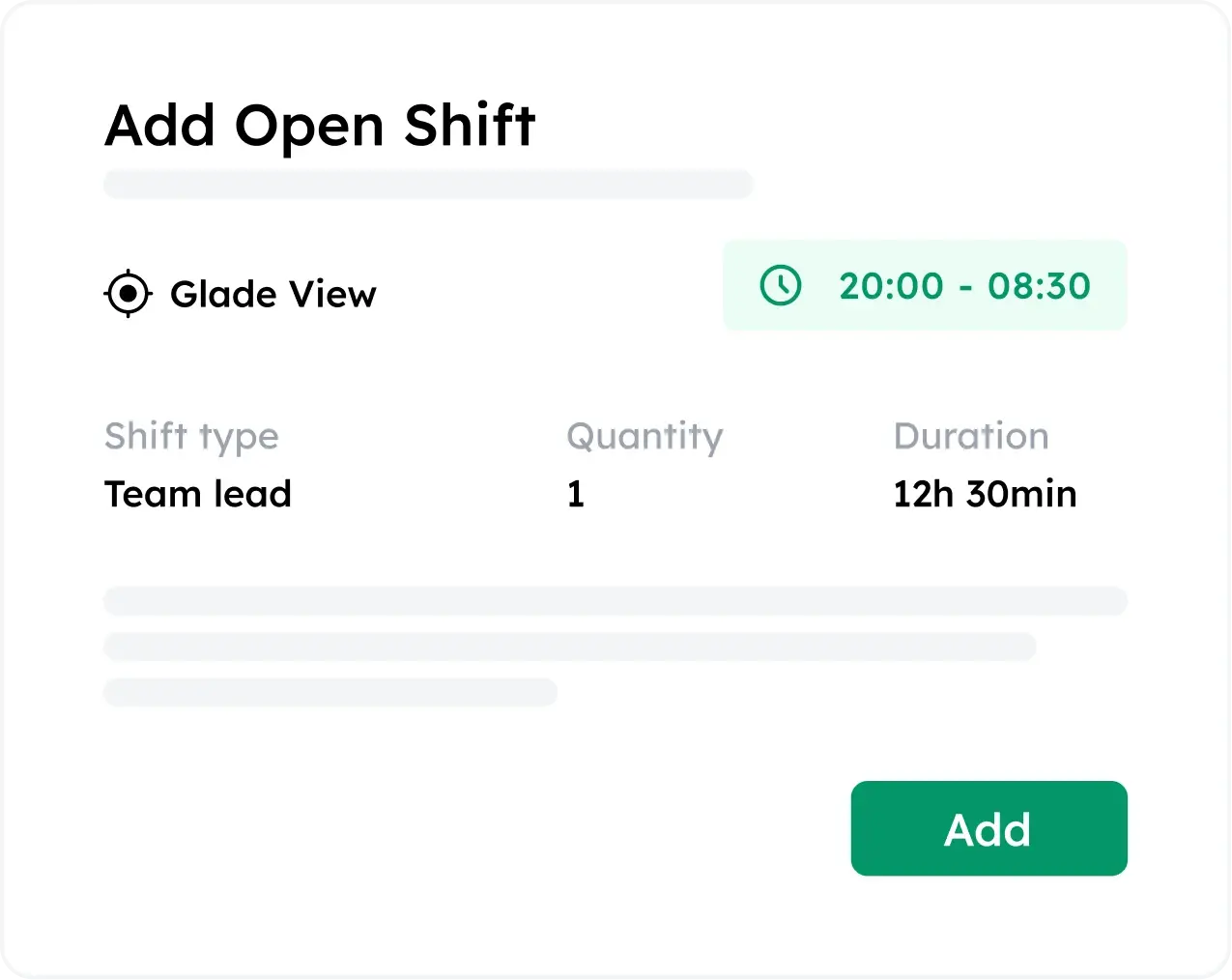 Quickly fill multi-site shifts with dynamic templates, bulk assignments, and flexible open shifts.