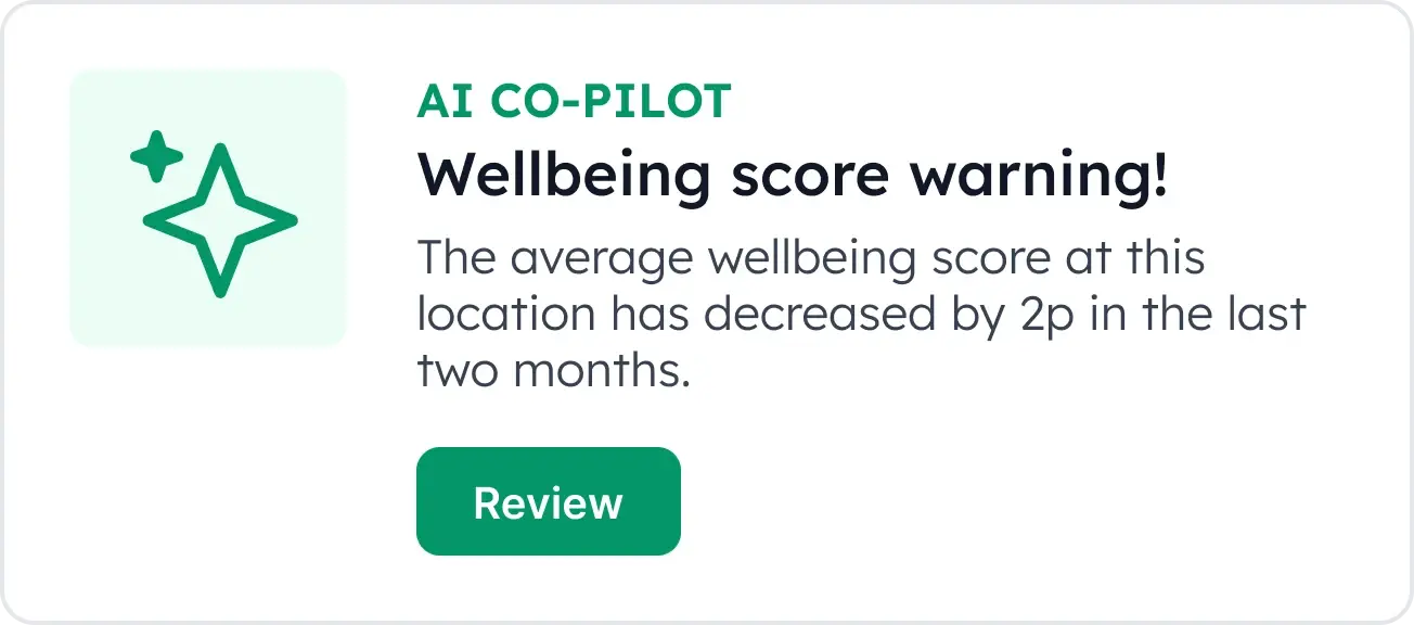 Proactively address employee needs with real-time updates and personalised feedback tools, ensuring timely support for those who need it most.
