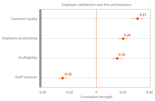 Data from an LSE research paper highlights how employee well-being (gauged as employee satisfaction) impacts your company's four critical indicators: