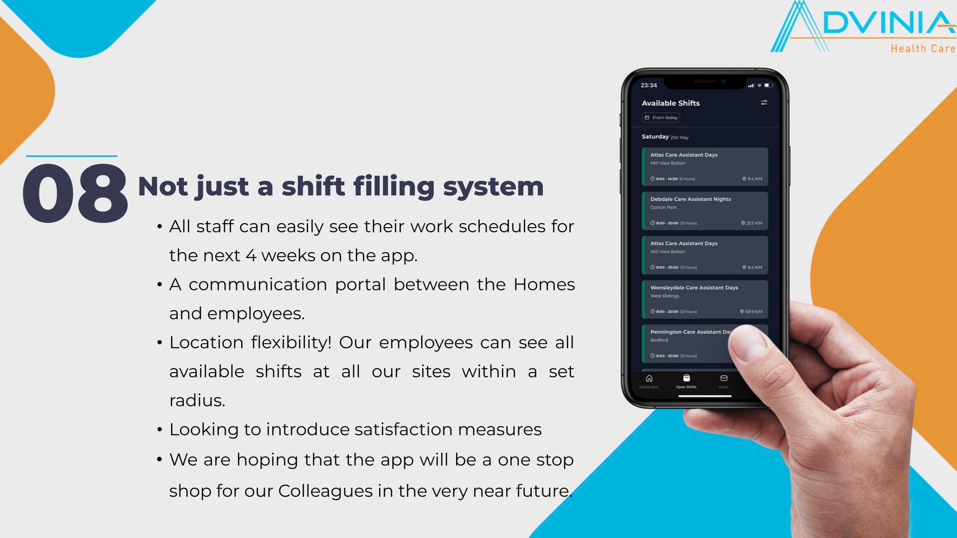 It's something we enable through our shift filler feature and has been successfully implemented at Advinia, where 49% of all vacant shifts are claimed through the app.